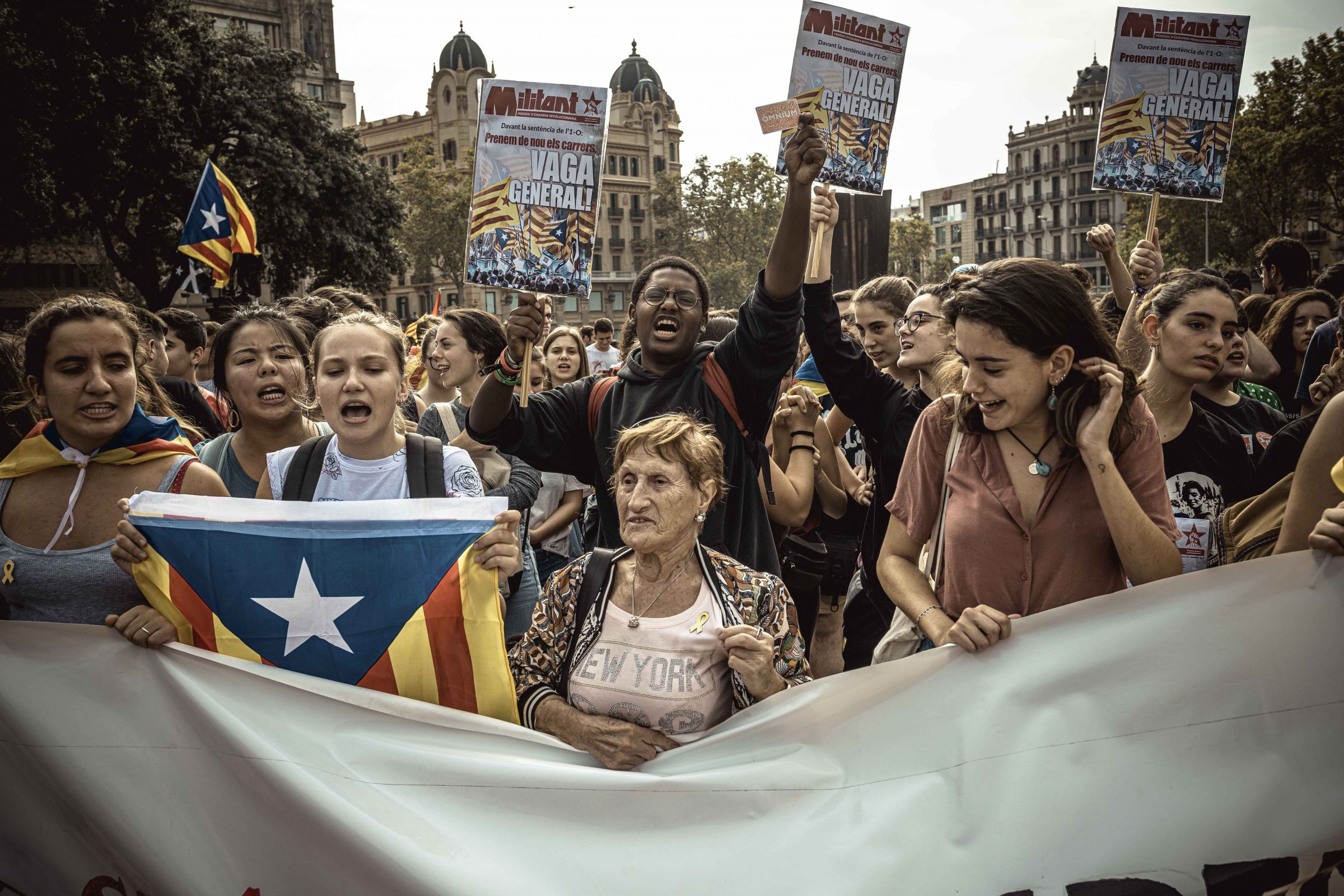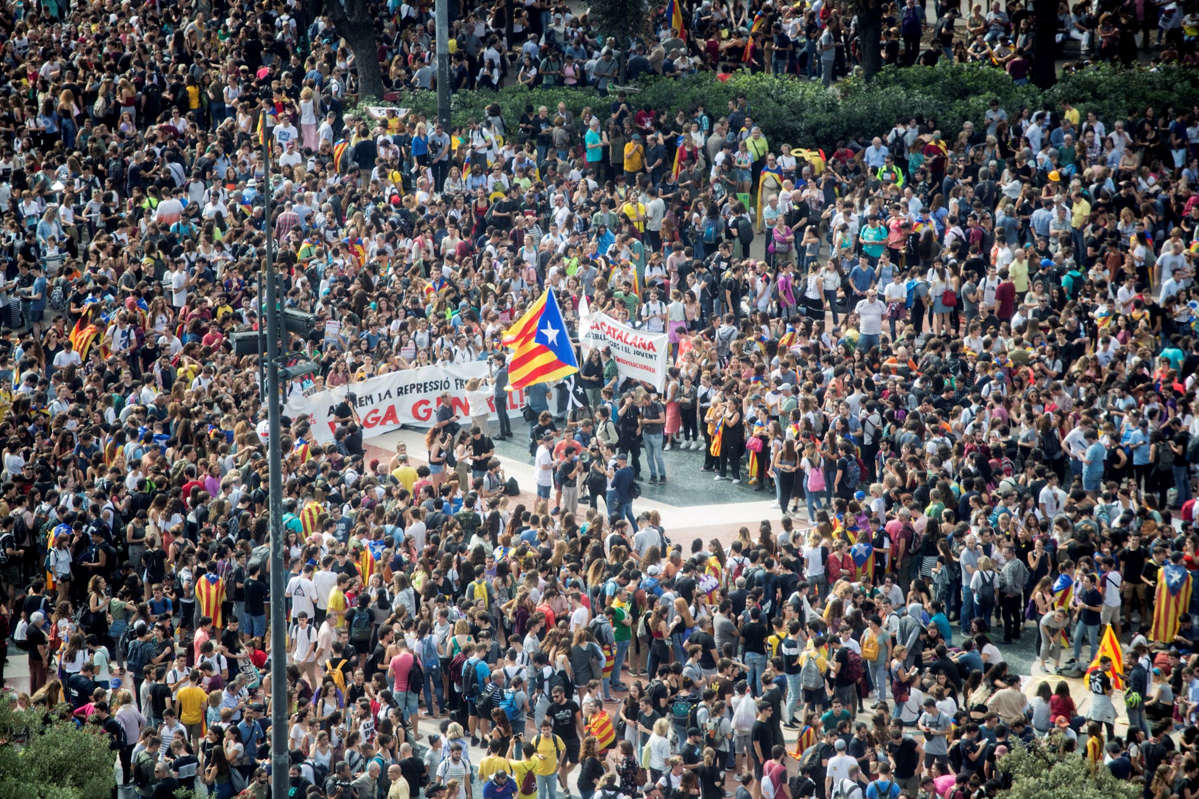 В Барселоне 14 октября устроили массовую акцию против приговора, вынесенного каталонским лидерам в связи с организацией референдума о независимости региона в 2017 году. Выступления начались по всей Барселоне, в том числе на главной улице города Виа Лайетана. Протестующие блокировали движение по четырем главным дорогам города, требуя освободить заключенных. В Жироне (100 километров от Барселоны) люди остановили движение поездов, как региональных, так и следующих во Францию.
