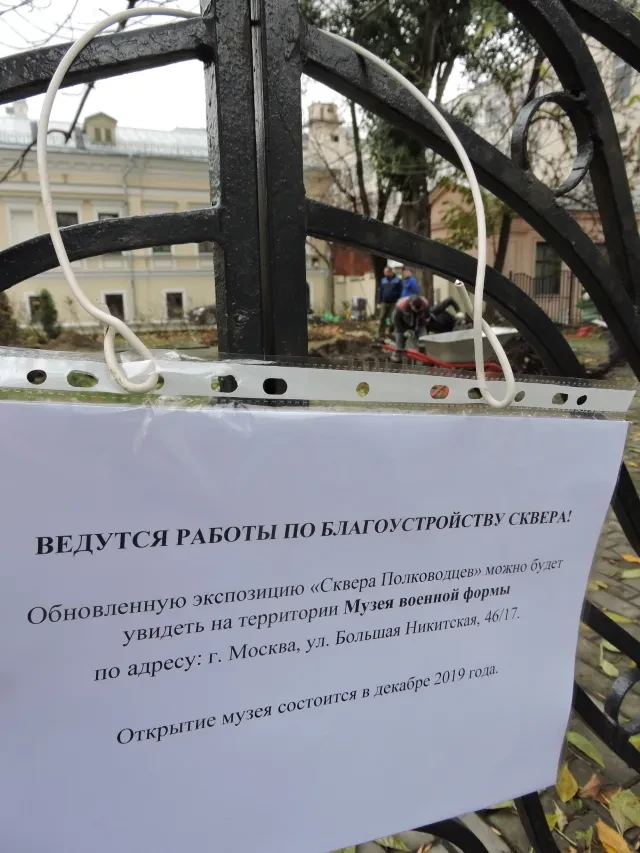В 2015 году Российское военно-историческое общество (РВИО) торжественно открыло в центре столицы «Сквер полководцев», облагородив, таким образом, приусадебную территорию перед входом в свою штаб-квартиру, уставив эту территорию тесными рядами разнообразной бронзы. Совершенно случайно редакция «Новой» оказалась соседкой этого великолепия. И по пути на работу я всякий раз поражался изысканной мысли устроителей «Сквера».