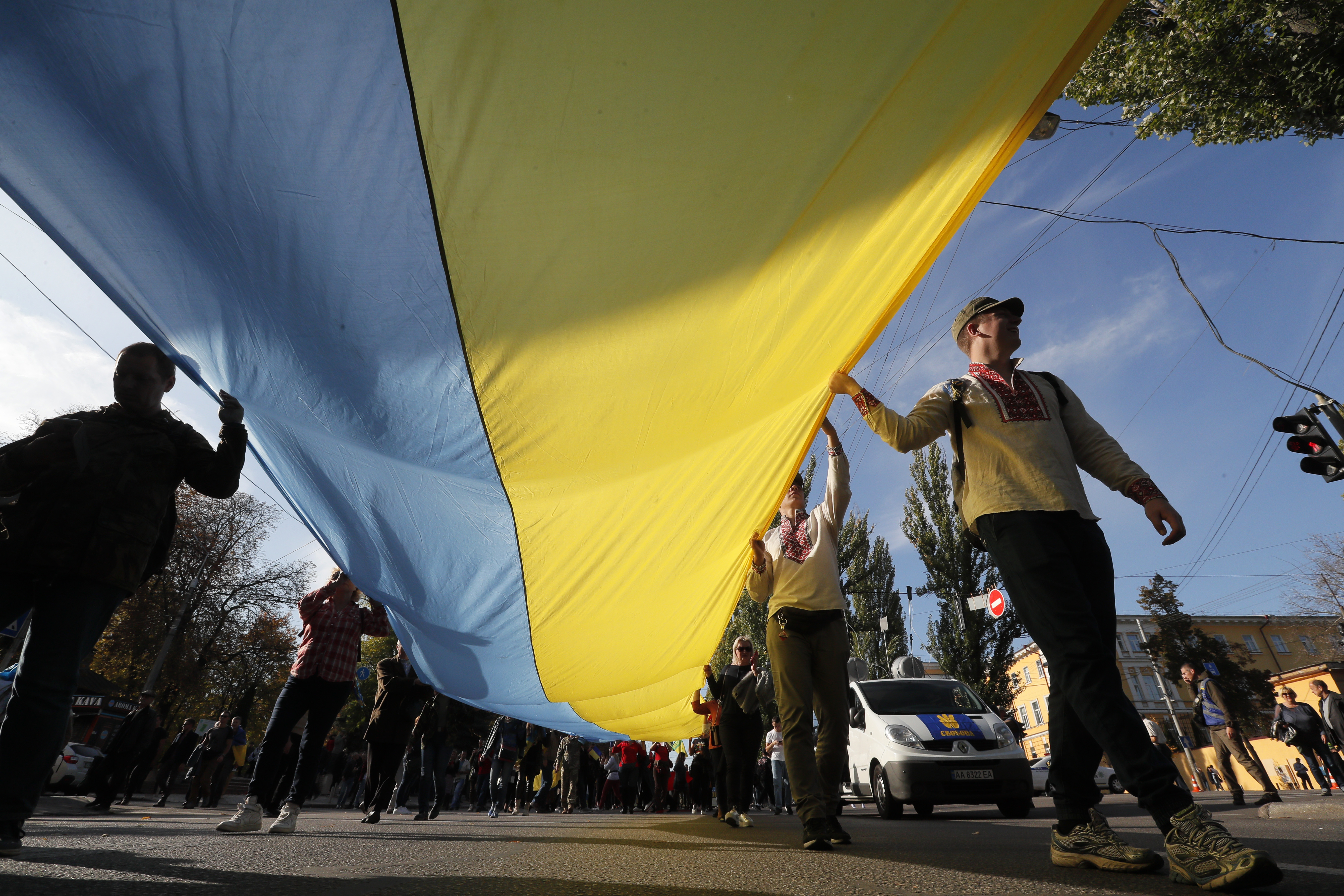 В понедельник, когда отмечается День защитника Украины, в центре Киева проходит два марша протеста. Один организован националистическими организациями, второй – гражданским "Движением сопротивления капитуляции". Участники требуют от президента Зеленского не идти на уступки России.