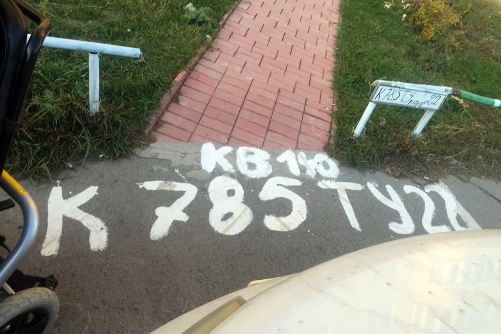 «Она [председатель ТСЖ] начала мне строить козни, написала на асфальте номер квартиры, но мне такие обозначения не нужны. Сегодня Мокрякова, завтра какая-нибудь Петрова придет и меня выгонит с этого места, — сетует Батяева. — Мы сами отмерили положенные нам 3,6, метра, но наша председатель поставила туда машину. Нам приходится протискиваться, чтобы занести дочь в квартиру. Вместо знака об инвалидности она мелом на парковке написала номер квартиры».