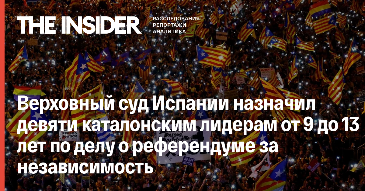 13 лет тюрьмы получил бывший замглавы правительства Каталонии Ориол Жункерас. Еще трое получили по 12 лет, один — 11,5, двое — по 10,5 и двое — по девять лет.