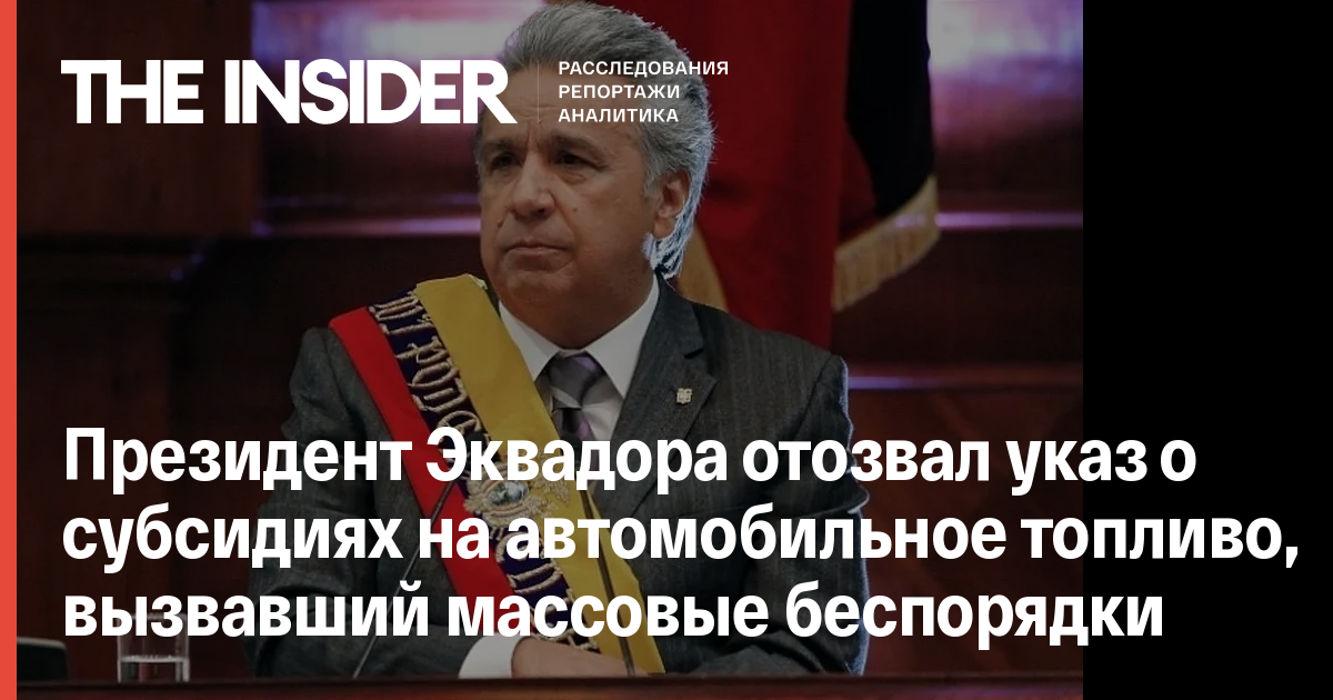 Президент Эквадора Ленин Морено отозвал указ об отмене госсубсидий на бензин и дизельное топливо, из-за которого в стране две недели продолжались массовые беспорядки.