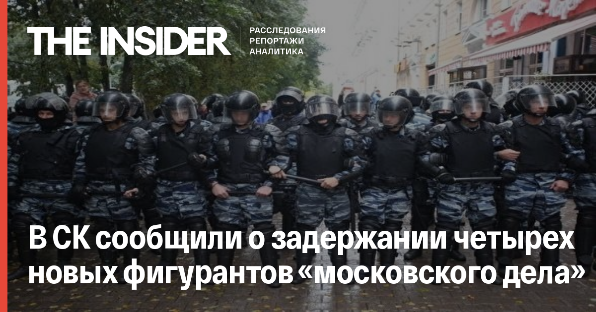 Следственный комитет сообщил о четырех новых фигурантах «московского дела». Имена задержанных — Егор Лесных, Максим Мартинцов, Андрей Баршай и Владимир Емельянов. По данным СК, еще двое новых фигурантов «скрылись, узнав о проведении следственных действий». Их имена не называются.