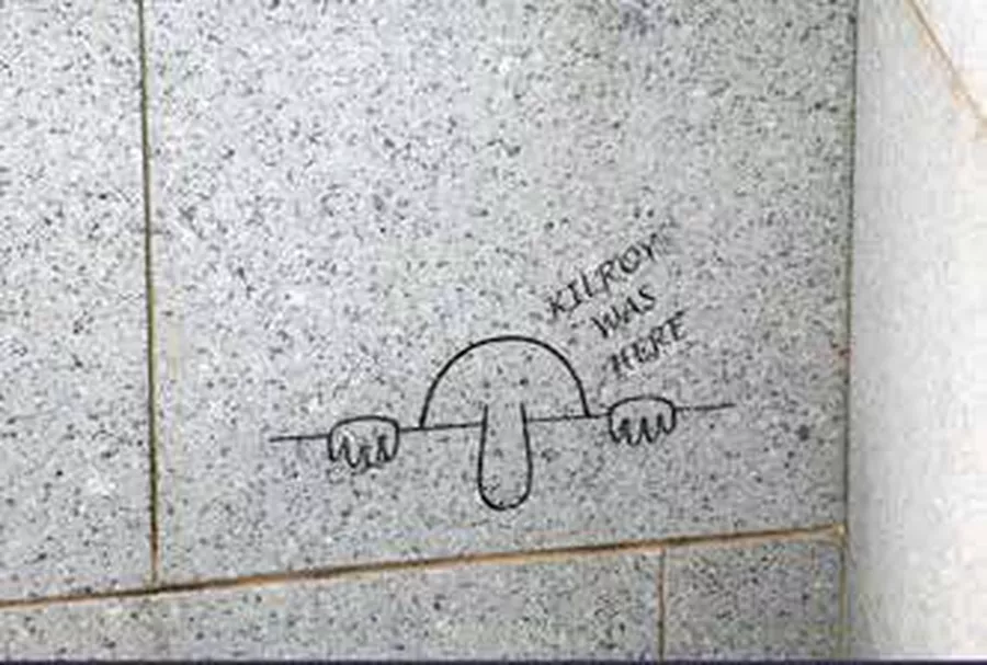 Во время Второй мировой войны повсюду, где бы ни оказались в Европе американские войска, появлялась надпись «Здесь был Килрой», сопровожденная забавной нарисованной фигуркой, высовывающей из-за стены длинный нос.
