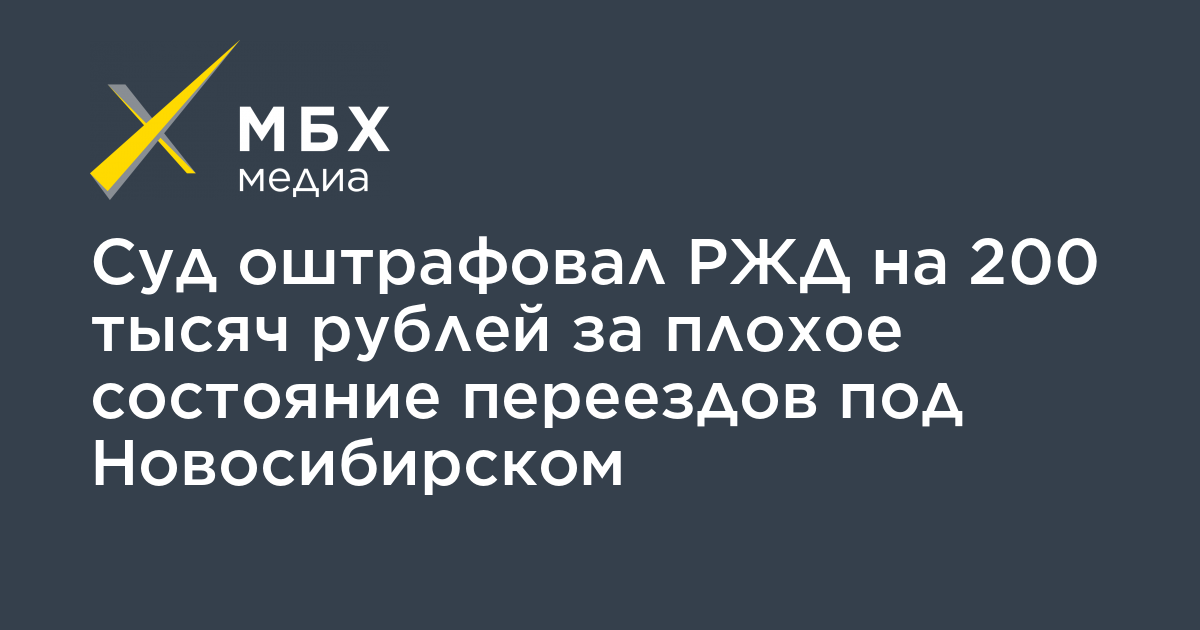 Мировой судья Мещанского района Москвы оштрафовал «Российские железные дороги» на 200 тысяч рублей из-за плохого состояния автомобильных переездов в Новосибирской области, об этом говорится в сообщении Западно-сибирской транспортной прокуратуры.