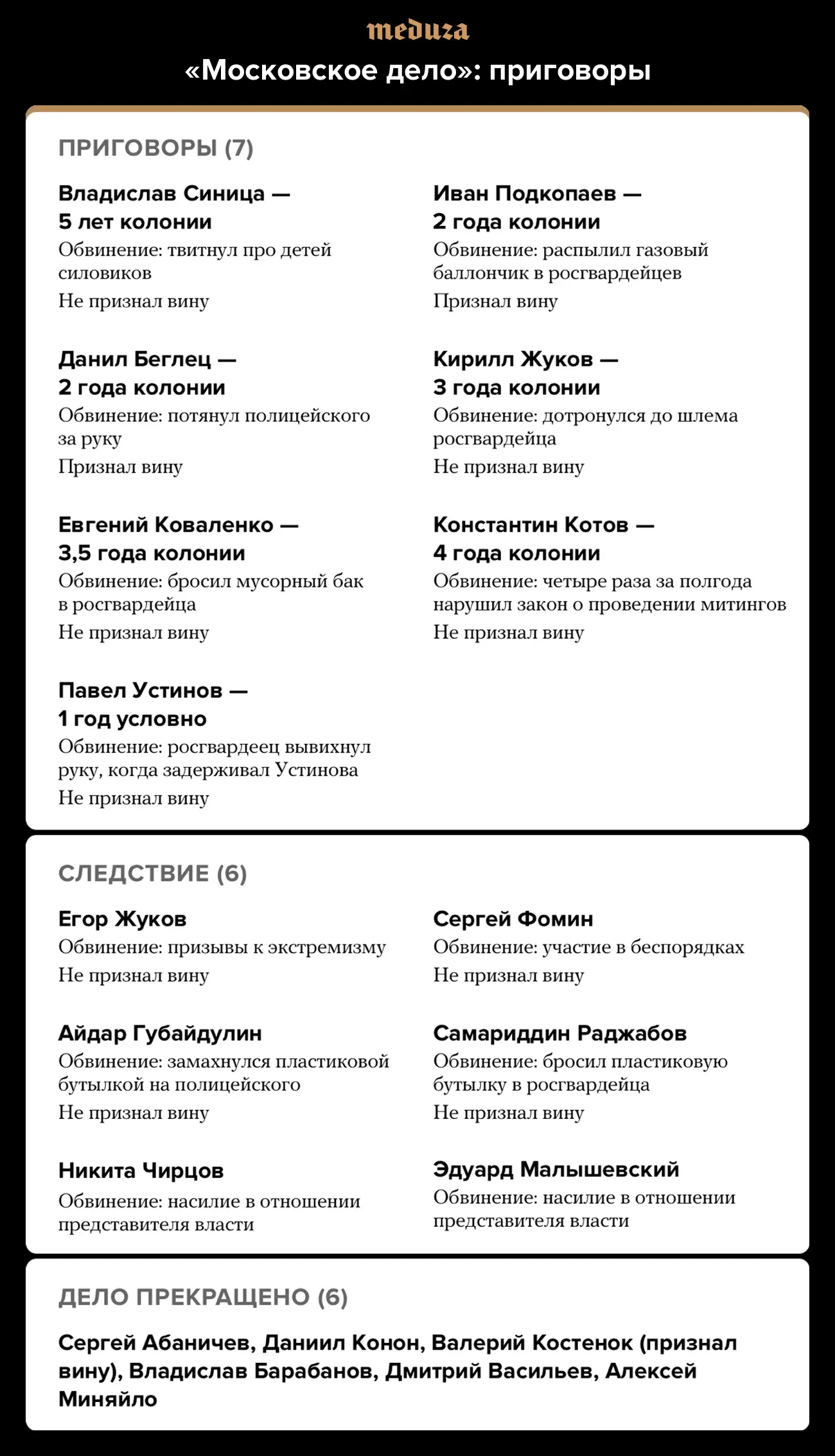 • 14 октября Следственный комитет объявил о задержании четырех новых подозреваемых по «московскому делу», в том числе Егора Лесных и Максима Мартинцова.