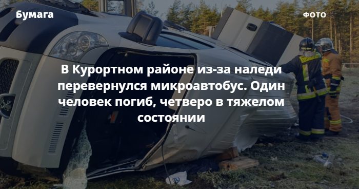 На Скандинавском шоссе в Курортном районе Петербурга перевернулся микроавтобус, перевозивший пассажиров. В аварии один человек погиб, четверо госпитализированы в тяжелом состоянии, трое получили легкие травмы. Об этом сообщает пресс-служба УГИБДД.