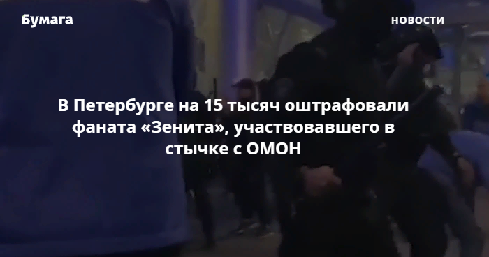 Фаната «Зенита» оштрафовали на 15 тысяч за попытку ударить сотрудника ОМОНа