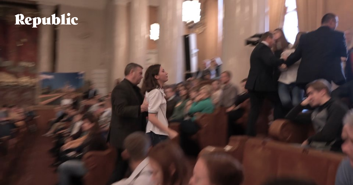 «Почему вы молчите? Аспиранта МГУ Азата Мифтахова пытает ФСБ! А ректор Садовничий молчит!» – прокричала студентка журфака МГУ Ольга Мисик, более известная как «девочка с конституцией».