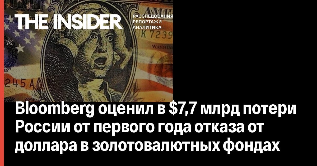 Первый год эксперимента президента Владимира Путина по постепенному отказу от доллара в золотовалютных резервах России стоил ей около $7,7 млрд недополученной прибыли. Об этом пишет Bloomberg.