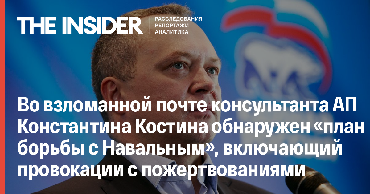 Во взломанной почте консультанта АП Константина Костина обнаружен «план борьбы с Навальным», включающий провокации с пожертвованиями