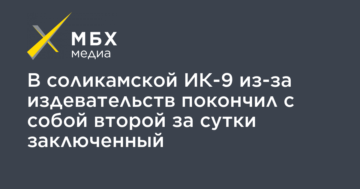 В соликамской исправительной колонии №9 (ИК-9) в Пермском крае второй за сутки заключенный покончил с собой, об этом «МБХ медиа» сообщил основатель правозащитного проекта Gulagu.net Владимир Осечкин.