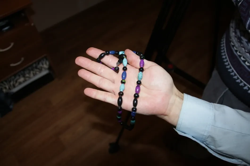 8 октября у Феликса и Евгении Махаммадиевых — восьмая годовщина свадьбы. «Чаще всего этот день мы проводили вдвоем. В прошлом году Феликс был в СИЗО под арестом. Но и там сумел сделать мне подарок». Женя достает из ящика стола маленькое ожерелье из синих и черных пластиковых бусин на нитке из распущенного шерстяного носка. «Это самый дорогой для меня подарок. Надеваю его на свидания с мужем».