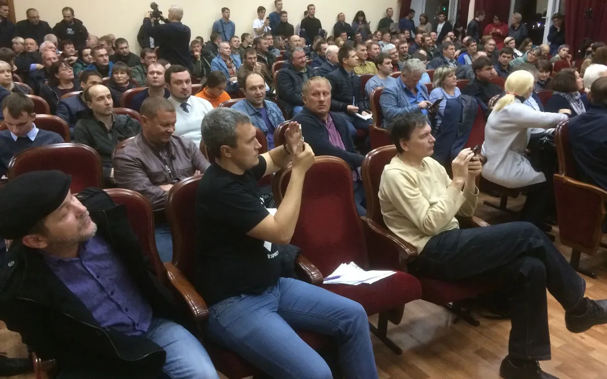 Я сидел с кразовцами в одном зале десятки раз — наблюдал эту особую социальную группу еще в 90-х, когда они были акционерами своего завода. То были, конечно, другие люди. Эти — молчат, огрызаются, каменеют. Не участвуйте в подлости, их просят, тоже этим же дышите и ваши дети этим дышат, и раз не уходите, так хоть не голосуйте. Сначала друг друга обзывают подставными и провокаторами. «Суки» и «собаки бешеные» — так это звучало накануне в соцсетях (артподготовка), теперь и наяву, и это наиболее мягкие выражения. «Тебя в карты проиграли, такое впечатление», «Ты уже на покойника похож, помолчи». Потом уже и по фене, и с угрозами общественницам. Те идут на штурм трибун, похищают доклады у докладчиков. Как водится, сначала — бабий бунт, потом подключаются и мужики. Вызывают жандармов, подъезжает и несколько машин с чоповцами «Тамерлан».