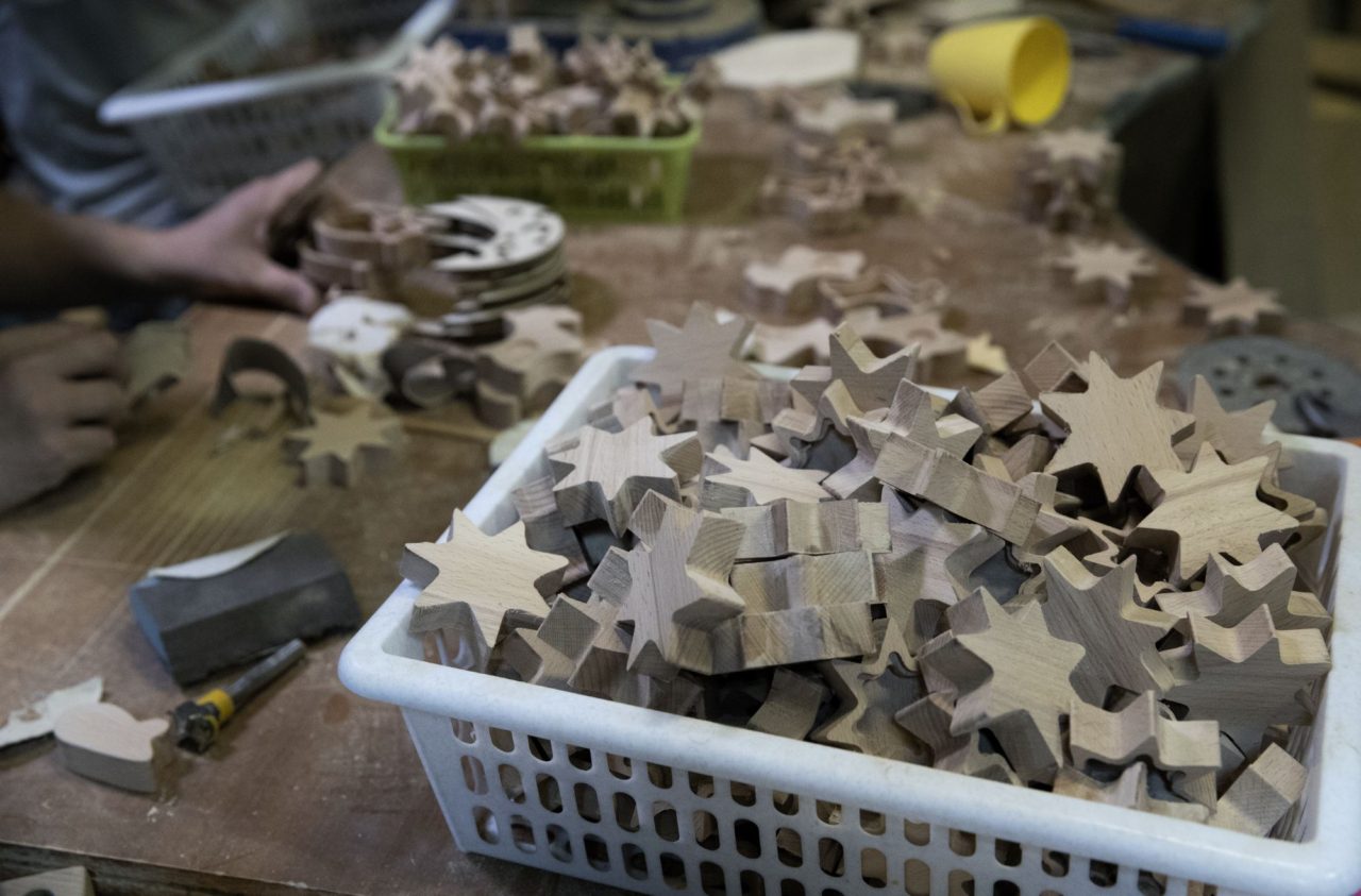 Деревянные заготовки различных фигур ждут обработкиФото: Андрей Любимов для ТД Андрей посмотрел на Мишу в работе и сказал, что руки у него работают хорошо, но нужно еще многому научиться. Вместе они составили удобный график работы: пока Миша приезжает в «Артель» три дня в неделю, но в дальнейшем хочет выйти на пятидневку.