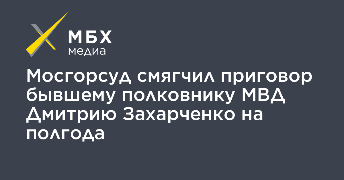 Московский городской суд смягчил приговор бывшему полковнику МВД Дмитрию Захарченко, который был приговорен к 13 годам колонии по обвинению во взяточничестве. Об этом сообщает корреспондент «МБХ медиа».