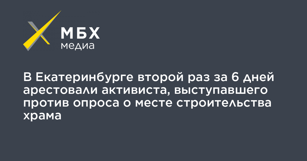 В Екатеринбурге второй раз за 6 дней арестовали активиста, выступавшего против опроса о месте строительства храма