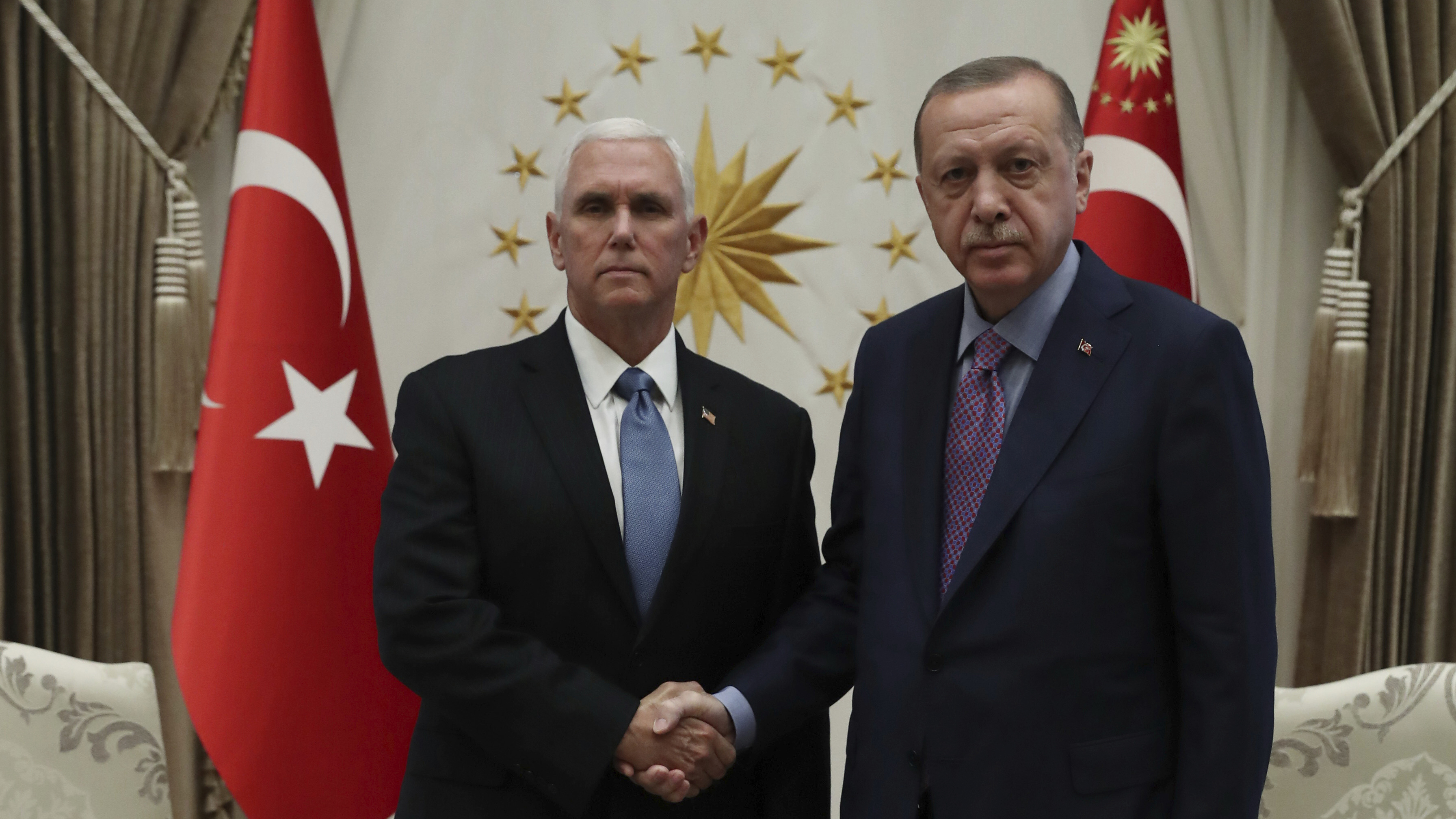 В Анкаре проходит встреча президента Турции Реджепа Эрдогана с вице-президентом США Майком Пенсом. Пенс вместе с госсекретарём Майком Помпео прибыли в Турцию с экстренным визитом, чтобы попытаться убедить Эрдогана прекратить военную операцию на севере Сирии.