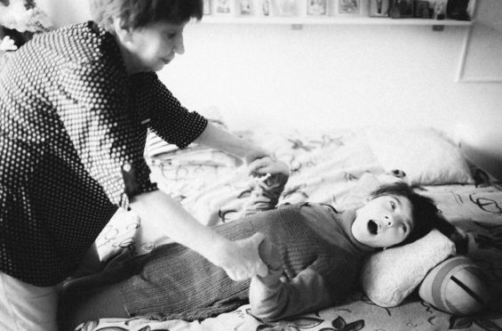 Они с мужем не перестают верить в улучшения. Они водят девочку к массажисту и логопеду, ищут специалистов, которые будут делать хорошую растяжку для суставов, к ней приходит учитель рисования. Юрий Сергеевич смастерил для внучки ходунки — простые прямоугольные доски с креплениями для ног. Одна пара креплений — для взрослого человека, вторая, спереди, — для Насти. Так девочка вместе с бабушкой или дедушкой может переставлять ноги и шагать по квартире. Ходунки служат уже несколько лет. Настя живет по четкому расписанию: подъем, зарядка, прогулка, физические упражнения и другие занятия.