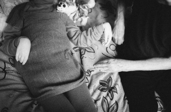 Бабушка Насти, Светлана Андреевна, обнимает внучку и повторяет: «Котенок ты мой, вот она какая девочка. Ты мой сладкий, ты мой дорогой ребенок, ты мое солнышко». Девочка утыкается ей в плечо и замирает.