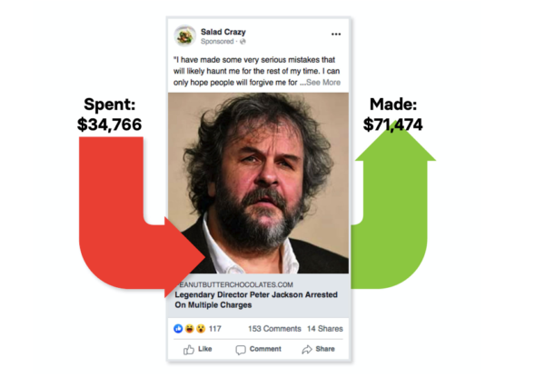 - Facebook запрещает использовать фото знаменитостей для распространения ложной информации. Ads Inc. обхитрила системы распознавания соцсети — каждая статья вела на «безопасную страницу», если кликнувший на ссылку пользователь не подходил под критерии таргета. К примеру, сотрудники Facebook попадали на страницу с блогом про еду, а не с фейковой новостью;