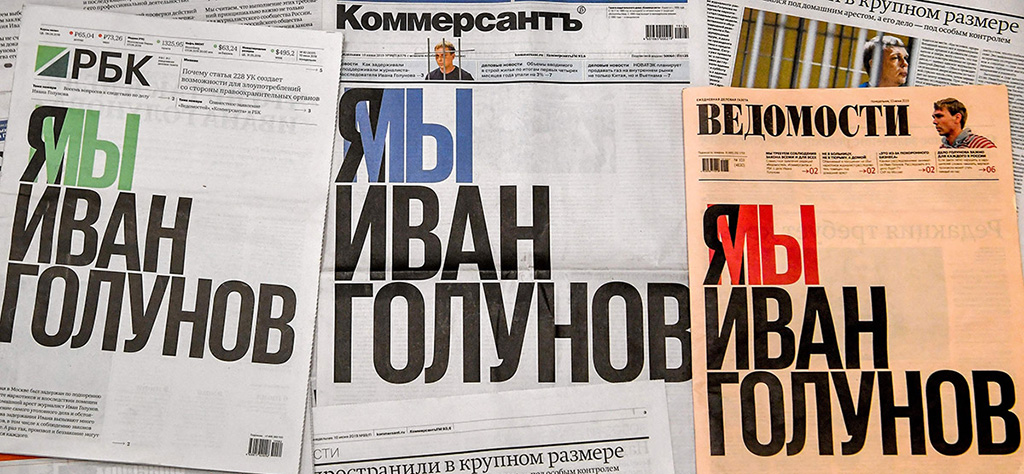 Символ «Я/Мы» появился во время дела журналиста Ивана Голунова. В поддержку журналисты «Медузы» три ведущие деловые газеты – «Ведомости», «Коммерсантъ» и «РБК» – вышли с одинаковым заголовком: «Я/Мы Иван Голунов». Тот момент многие называли историческим.