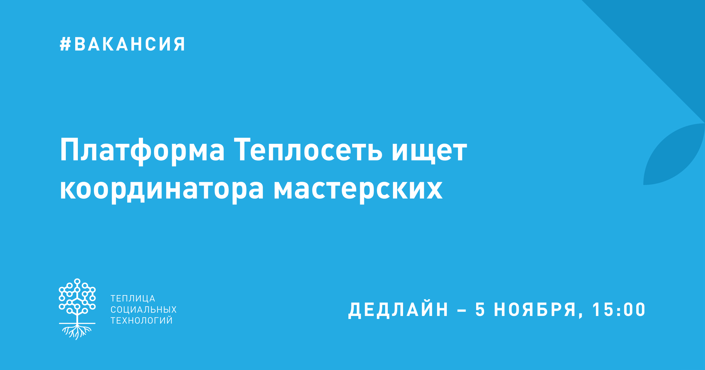 Теплица социальных технологий ищет инициативного и ответственного человека на вакансию координатора региональных мастерских в рамках платформы «Теплосеть».