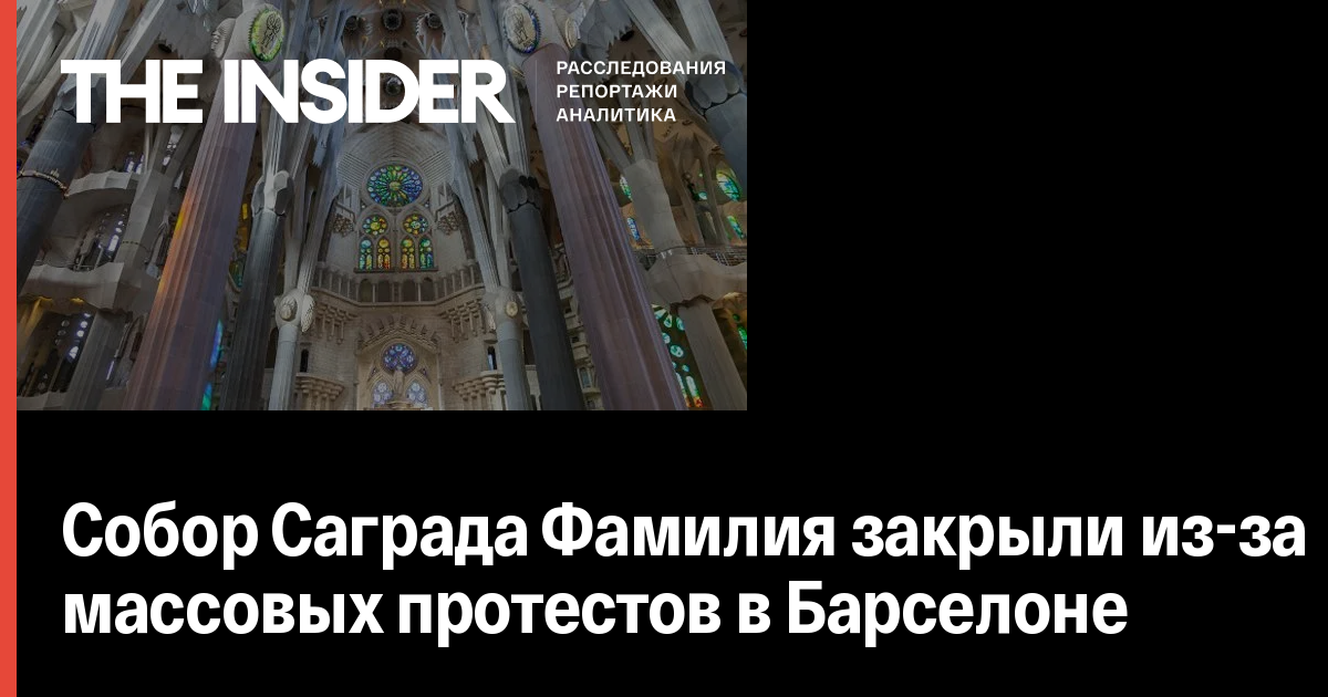 Собор Саграда Фамилия в Барселоне закрыли для посещения из-за массовых протестов. В городе сегодня должны пройти пять крупных маршей протеста, сообщает АР.