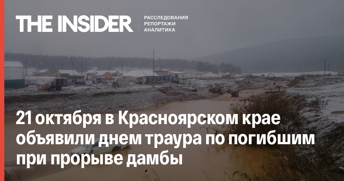 Губернатор Красноярского края Александр Усс подписал распоряжение об объявлении 21 октября днем траура по погибшим при разрушении дамбы в Курагинском районе, сообщает «Интерфакс» со ссылкой на пресс-центр правительства региона.