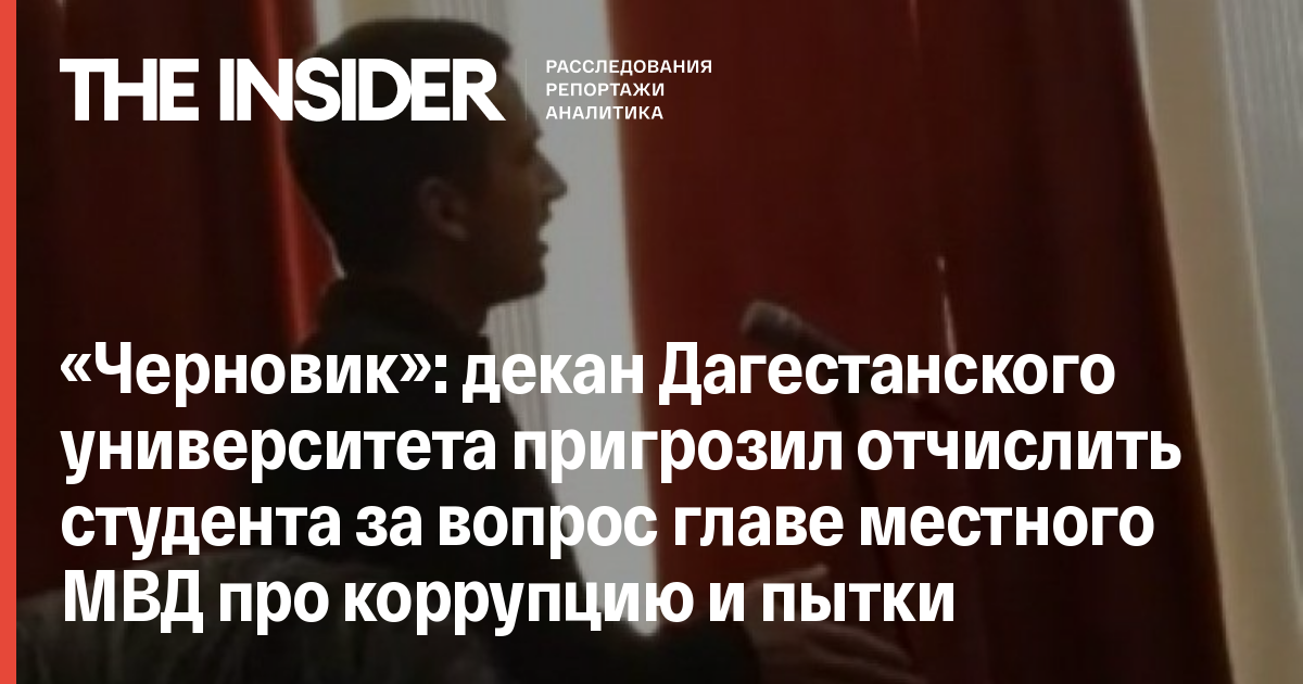 «Черновик»: декан Дагестанского университета пригрозил отчислить студента за вопрос главе местного МВД про коррупцию и пытки
