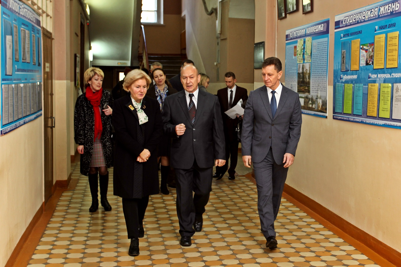 Первым объектом для посещения делегации стал Суздальский индустриально-гуманитарный колледж. Голодец пообщалась со студентами, оценила уровень подготовки будущих работников туриндустрии. В ходе визита студенты продемонстрировали свои творческие достижения и подарили вице-премьеру куклу, сделанную своими руками.