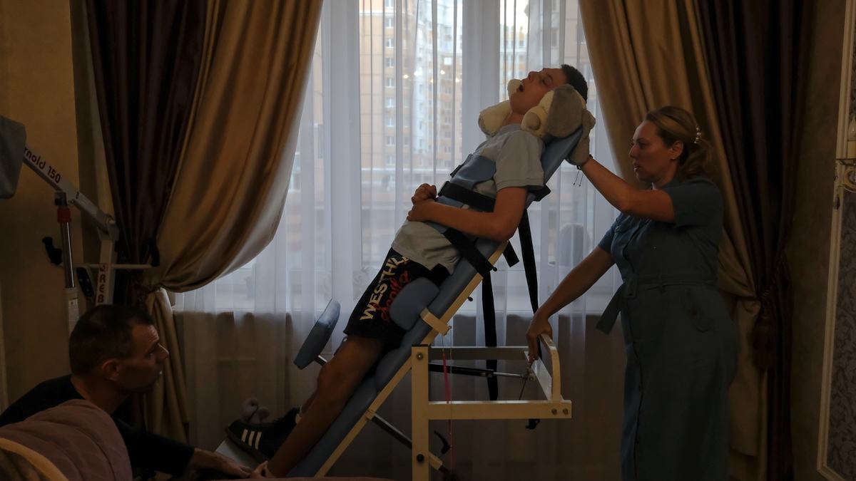 Стас заходит в квартиру и первым делом идет в комнату к сыну. Сразу видно, на кого похожи и брат, и сестра. «Принеси его сюда, в кресло», — говорит Марина, и Стас выносит на руках сына и сажает в коляску в гостиной. Нежно накрывает его одеялом, поправляет ему руки и ноги. Гладит по голове.