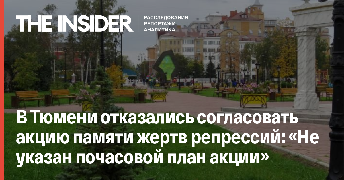 Администрация Тюмени отказалась согласовать акцию памяти жертв репрессий советского периода из-за отсутствия «почасового плана» мероприятия. Об этом рассказала организатор акции Дарья Петрунина.