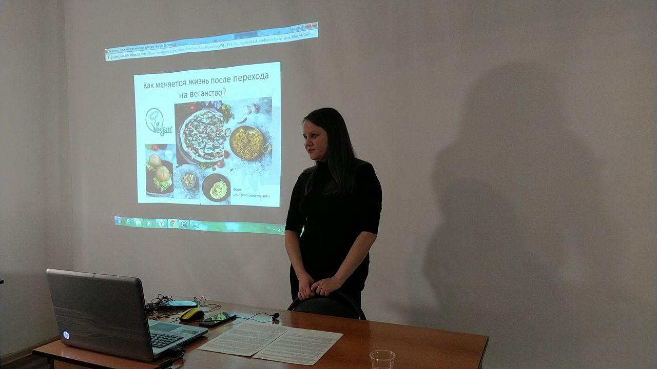 Лекторка сделала упор на том, что эмпатия к животным присуща почти всем людям, и в связи с этим быть веганом или веганкой – моральный минимум перед животными для каждого человека.