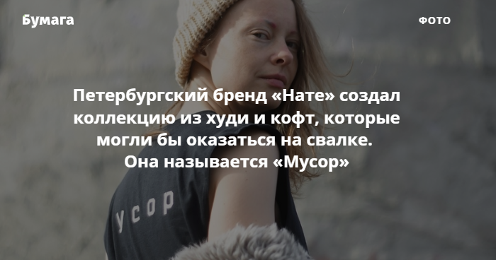 Бренд «Нате» из Петербурга выпустил экологическую коллекцию «Мусор». Это кофты и худи, которые дизайнерам предоставили благотворительные магазины «Спасибо!» и которые, как пишут в соцсетях компании, могли бы оказаться на мусорном полигоне. Внимание на это обратил The Village.