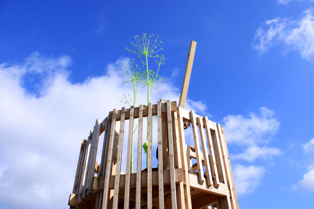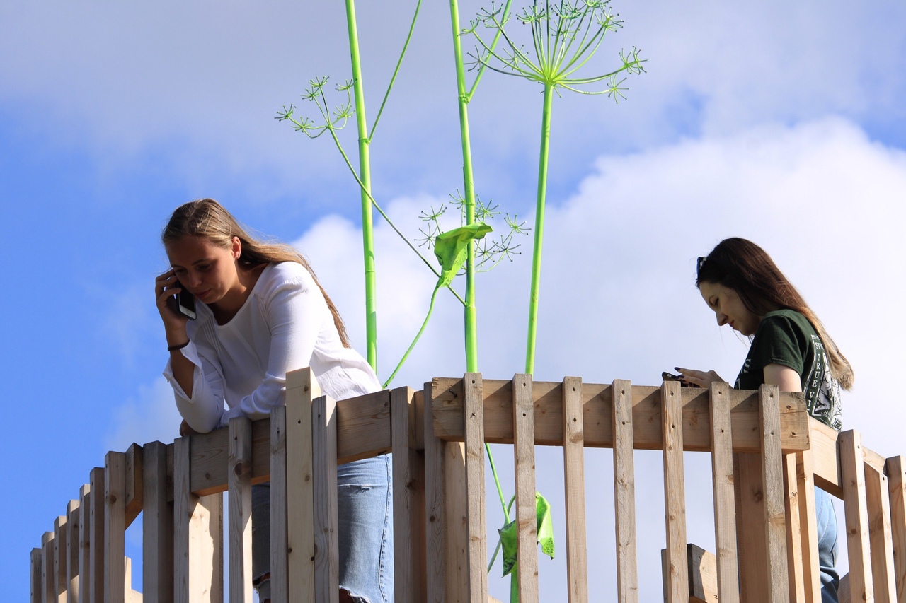 Участники Waterfront также создали на набережной «Музей борщевика». Они установили вышку, с которой видны недоступные из-за ядовитого растения территории, а также провели лекцию о борьбе с борщевиком.