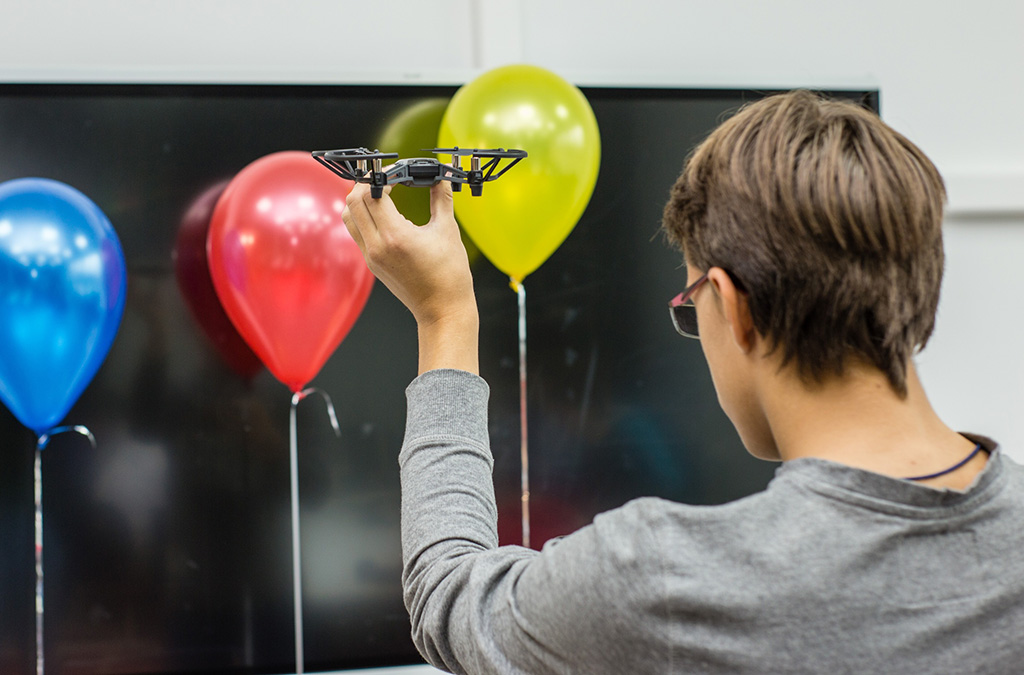 5 команд в течение 6 часов пробовали программировать коптеры Tello EDU, чтобы те распознавали шары по цветам и подлетали к ним. Большинство из ребят ранее не управляли коптерами и не работали с компьютерным зрением. Получилось у школьников неплохо: цвета распознавались, квадрокоптеры взлетали. Разве что к шарам подлететь не удалось – но тут уже вопрос ограниченного времени и нового опыта.