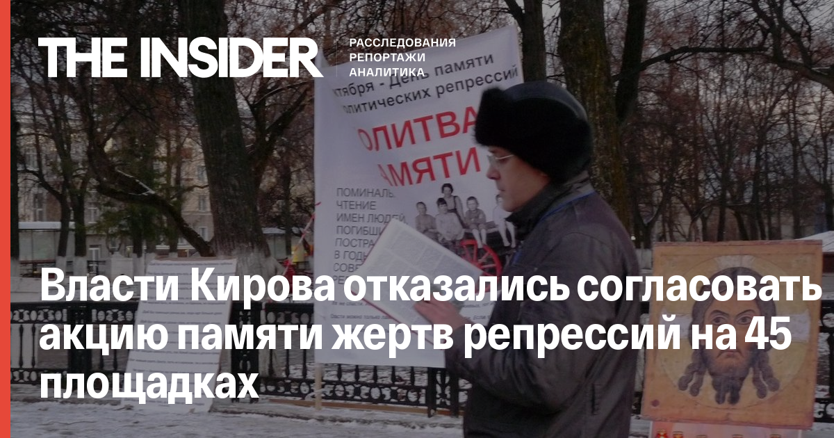 В Кирове власти отказались согласовать акцию памяти жертв политических репрессий на всех 45 предложенных заявителем площадках. Об этом написал организатор акции Вадим Ананьин.