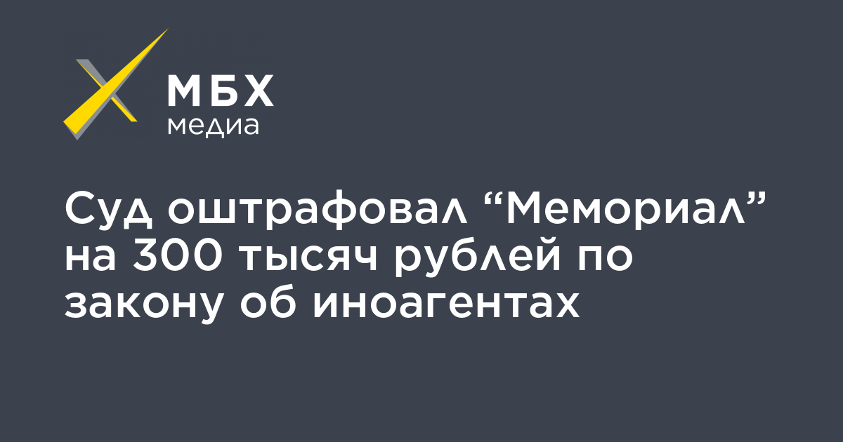 Суд оштрафовал «Мемориал» на 300 тысяч рублей по закону об иноагентах