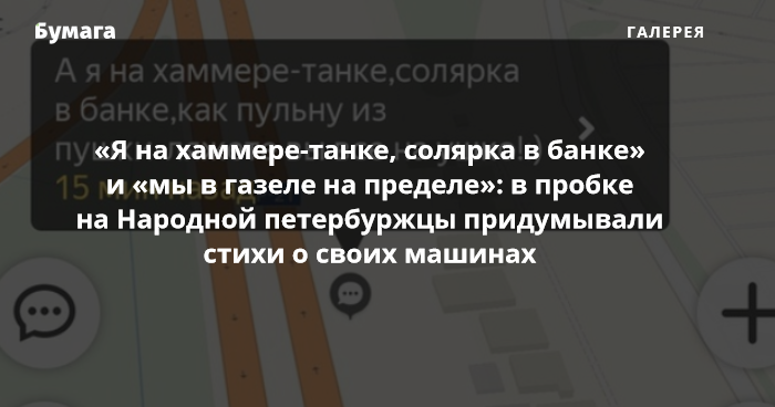 «Я на хаммере-танке, солярка в банке» и «мы в газеле на пределе»: в пробке на Народной петербуржцы придумывали стихи о своих машинах