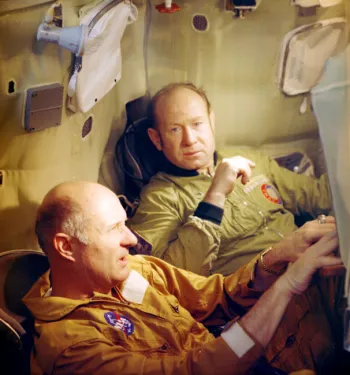 Леонов и Кубасов все-таки совершили новый исторический полет — на корабле «Союз-19», который в июле 1975 года состыковался на околоземной орбите с американским «Аполлоном». Рейс прошел более чем успешно, на десятилетия сделав Леонова самым авторитетным советским космонавтом после Юрия Гагарина4.
