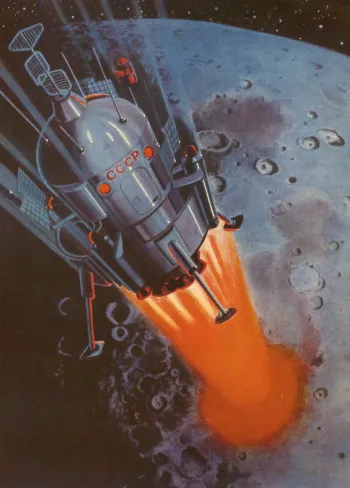 После экстремального полета на «Восходе-2» к Алексею Архиповичу Леонову пришла всемирная известность. О нем рассказывали не только как о первом человеке, совершившем выход в открытый космос, но и как о выдающемся художнике-самоучке, который способен показать людям внеземное пространство в виде образа, пропущенного через человеческое восприятие. Вскоре на страницах периодики и в наборах открыток появились картины Леонова, созданные при участии «космического» художника Андрея Соколова, и примечательно, что посвящены они были грядущей высадке на Луну2.