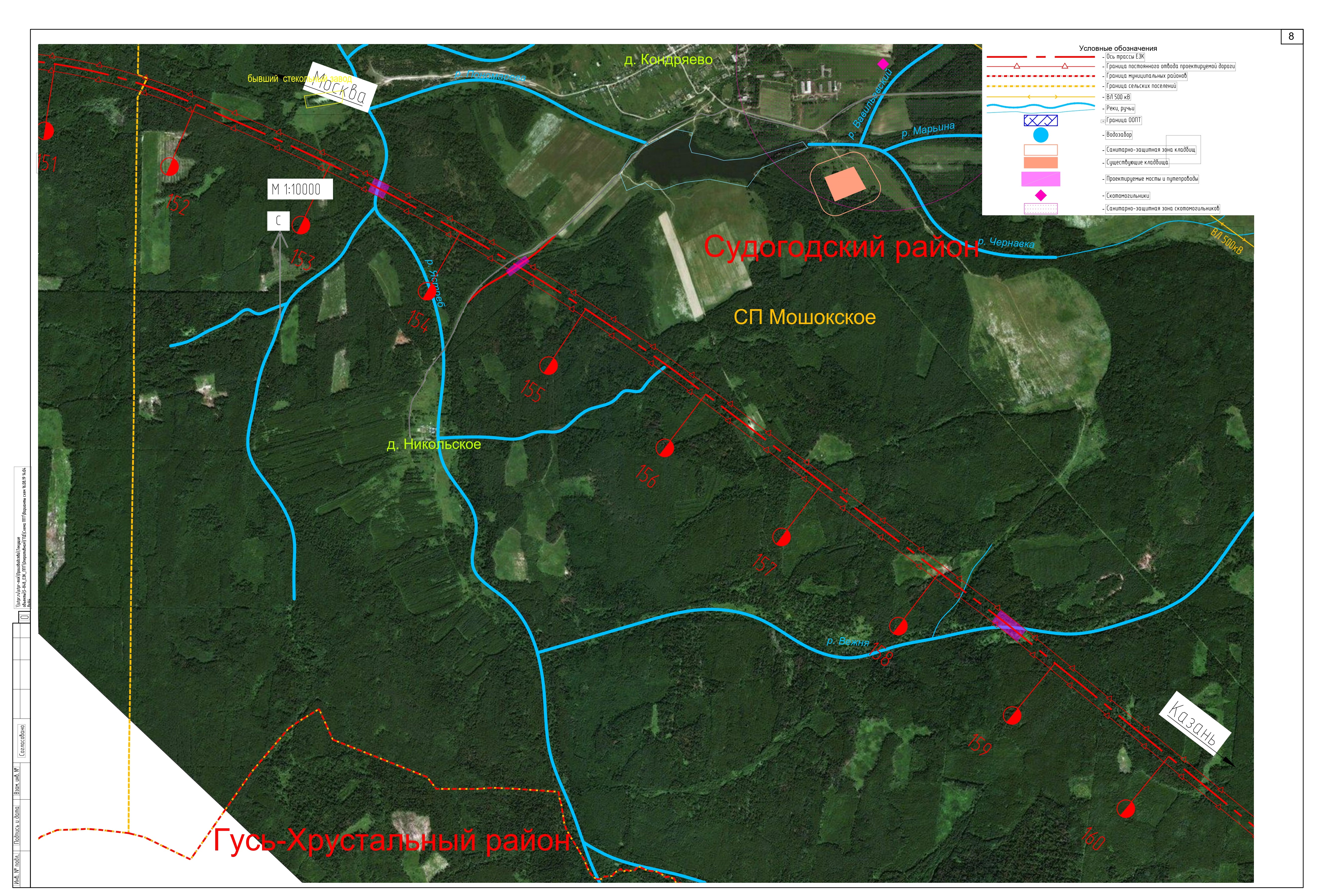 1.2.3.4.5.6. Трасса будет проходить также через территории Собинского, Судогодского, Гусь-Хрустального, Селивановского и Муромского районов.