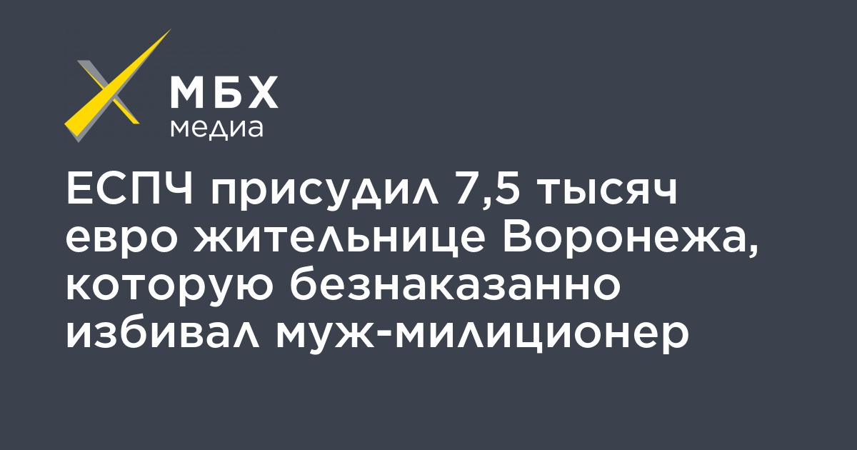Европейский суд по правам человека (ЕСПЧ) обязал Россию выплатить 7,5 тысячи евро компенсации жительнице Воронежа Диане Барсовой за то, что ее мужа, который работал милиционером, не привлекали к уголовной ответственности за избиения жены. Решение опубликовано на сайте суда, на него обратила внимание «Медиазона».