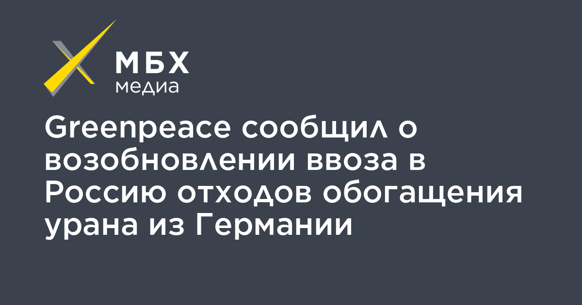 Западноевропейская компания Urenco в 2019 году возобновила транспортировку в Россию урановых хвостов с немецкой уранообогатительной фабрики в городе Гронау, об этом сказано в документе властей немецкой земли Северный Рейн-Вестфалия. Об этом «МБХ медиа» сообщили в Greenpeace.