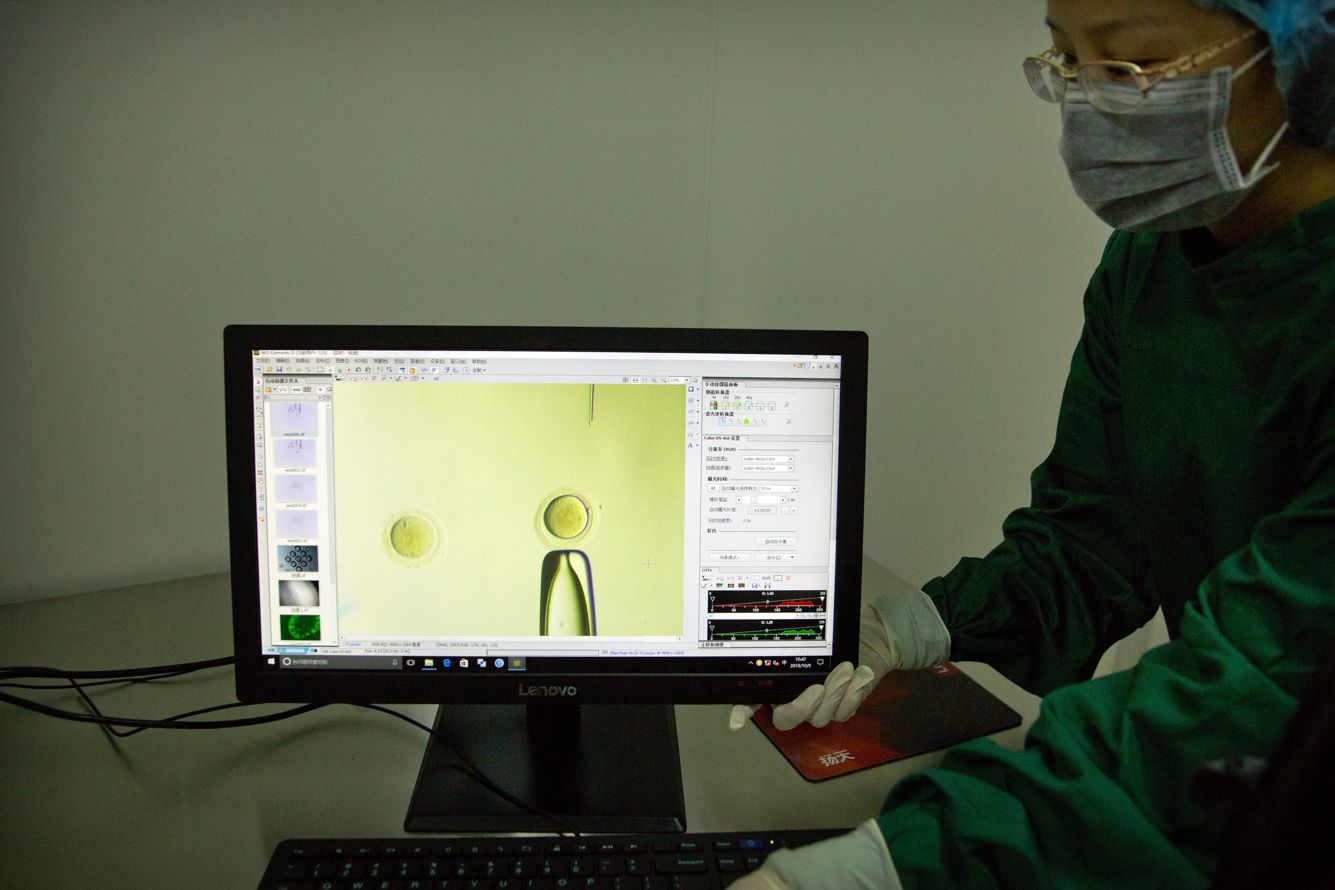 Mark Schiefelbein / AP / Scanpix / LETA Эксперимент по имплантации в яйцеклетку системы для редактирования генома — белка Cas9 и гидовой РНК. Фото сделано 9 Октября 2018 года в лаборатории Хэ Цзянькуя в китайском Шэньчжене.