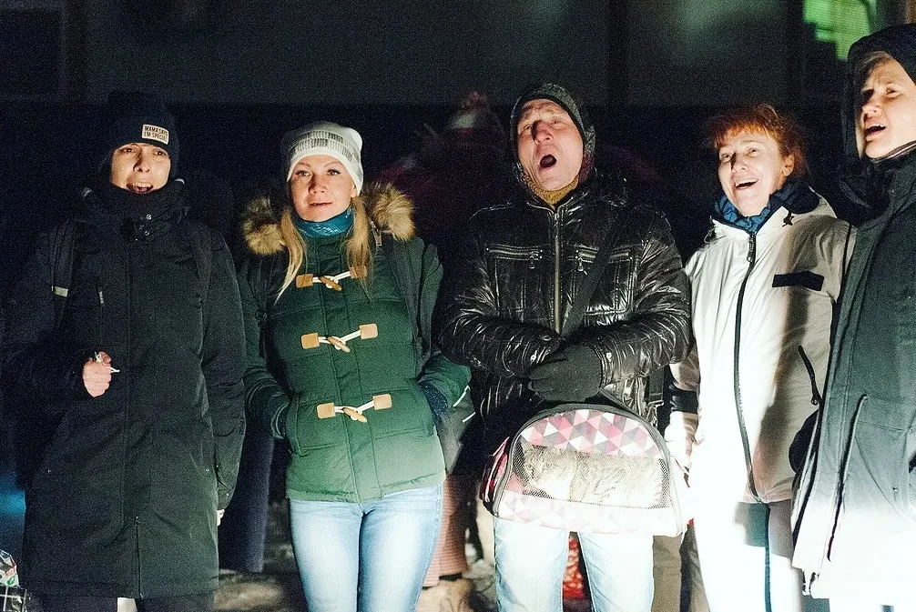 Были и не очень дружелюбные товарищи. На Ярославском вокзале кто-то все время орал: «Да на хера нам ваши интервью, дайте лучше каши!» Хотя каша на раздаче там была. Несколько тетушек взбунтовались против припева «В мире саннисайда». Что еще за саннисайд? Солнечная сторона? А почему на непонятном языке? Мы такое петь не будем! Парень с котом предложил спеть «Вот кто-то с горочки спустился». И мы, кстати, спели. Но в общем, все было мирно, хоть и своеобразно.