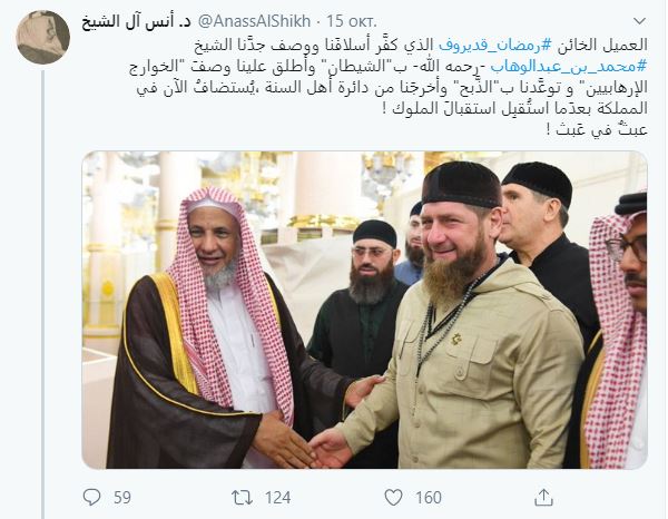 Диалог о Кадырове между саудовскими салафитами начался с высказывания пользователя под ником Анасс Аль-Шейх. 15 октября он выложил фотографию Кадырова со словами: