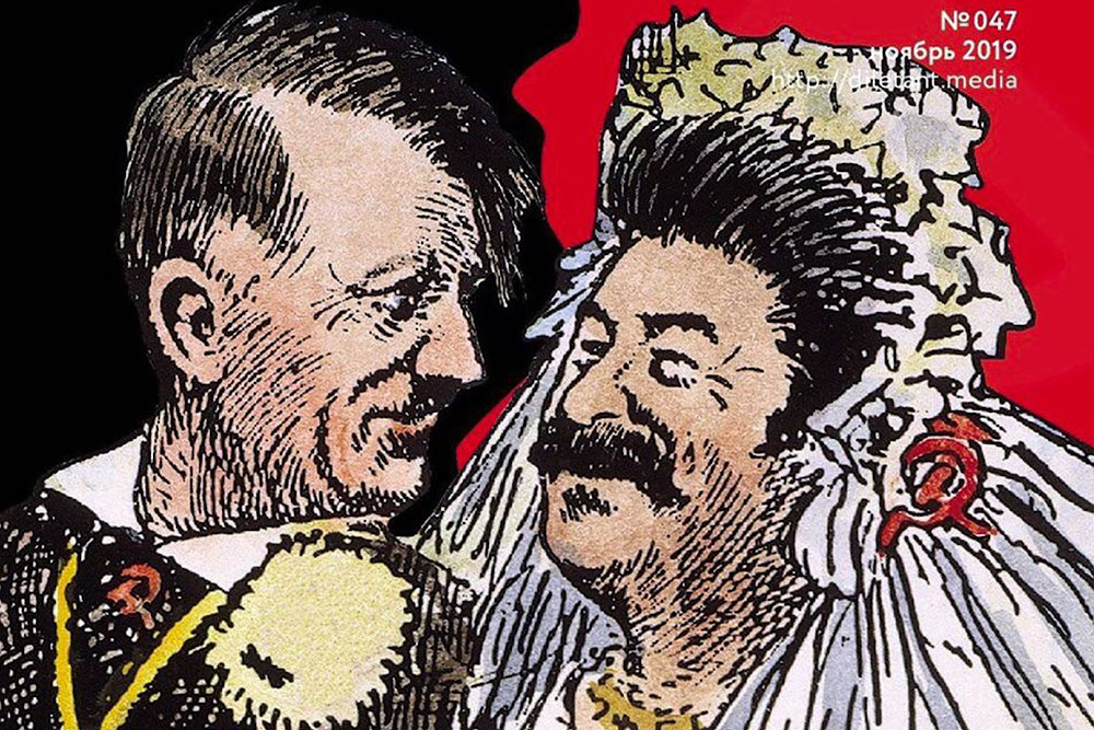 Причиной для возврата издателю выпуска стала надетая на Сталина фата и изображенная на пиджаке Гитлера свастика, пишет Znak.com со ссылкой на представителя магазина. «Они надели фату на Сталина», — заявила представитель магазина. Как пояснил «Эху Москвы» главный редактор журнала Виталий Дымарский, на самом деле на обложке — репродукция старой американской карикатуры.