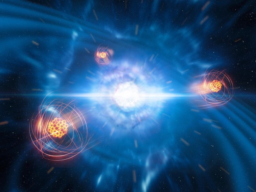 «Проведя повторный анализ наблюдений слияния нейтронных звезд в 2017 году, мы отождествили признаки присутствия в спектре килоновой одного тяжелого элемента — стронция, что доказывает: столкновение нейтронных звезд действительно приводит к образованию этого элемента во Вселенной, — говорит главный автор исследования Дарах Уотсон (Darach Watson) из Копенгагенского университета. — Мы достигли финальной стадии продолжавшегося много десятилетий поиска источников происхождения элементов. Сейчас мы знаем, что процессы, в ходе которых образуются элементы, происходят в основном в недрах обычных звезд, во взрывах сверхновых или во внешних оболочках старых звезд. Но до сих пор нам не были известны объекты, где происходит последний до сих пор не открытый процесс: так называемый захват быстрых нейтронов, при котором и образуются самые тяжелые элементы периодической таблицы».